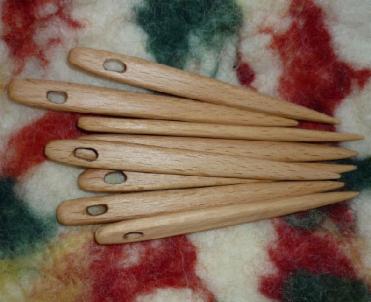 handgefertigte Nadeln aus Holz (meist Buche)